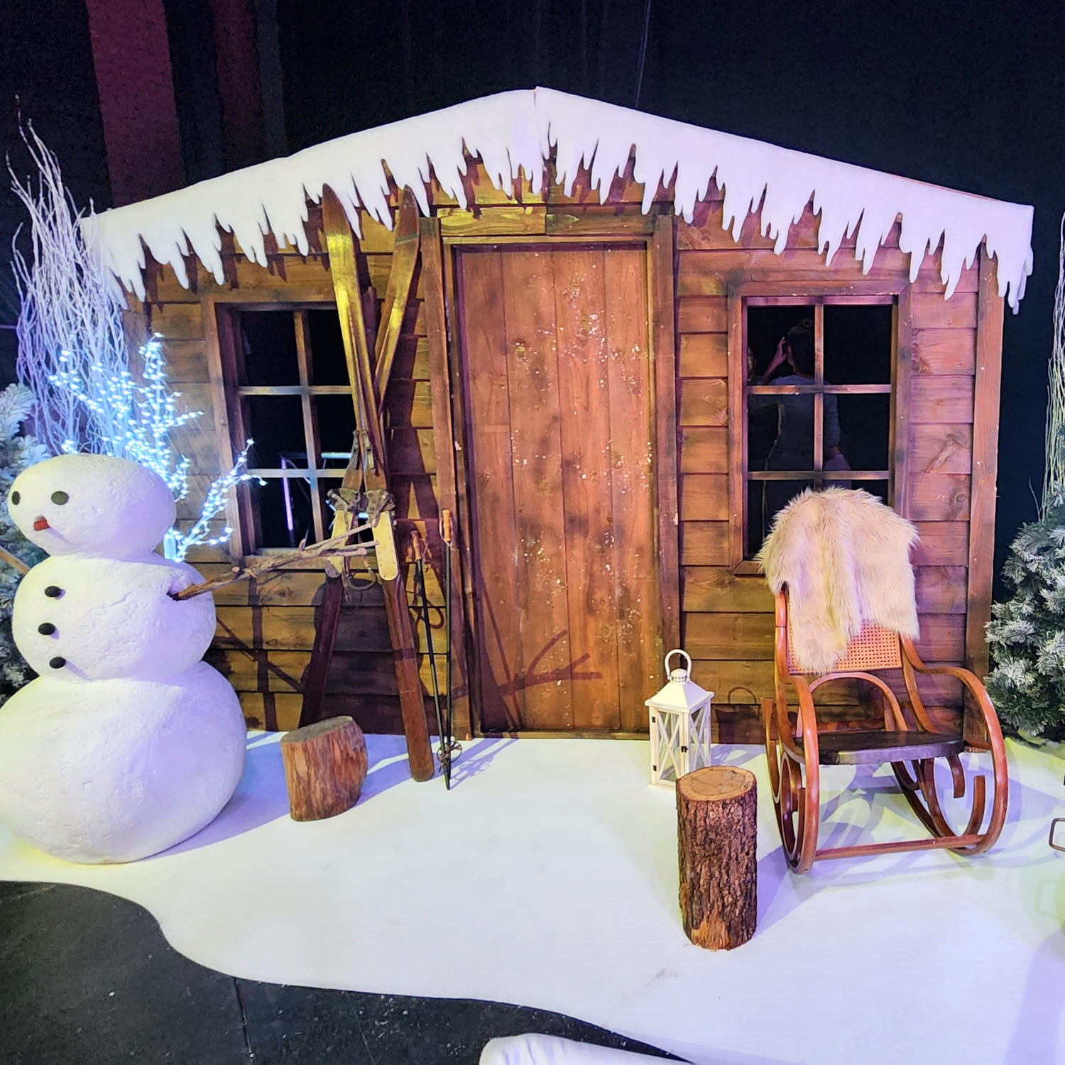 La location d’une façade de chalet de Noël permet d’installer un décor de saison à forte valeur visuelle, sans avoir à construire une structure complète. Imitant parfaitement l’aspect du bois vieilli et décorée de fausse neige ou de stalactites, cette façade crée instantanément l’illusion d’un petit refuge de montagne. Elle s’adapte à tout environnement professionnel souhaitant recréer un univers hivernal ou montagnard dans le cadre d’un événement temporaire.