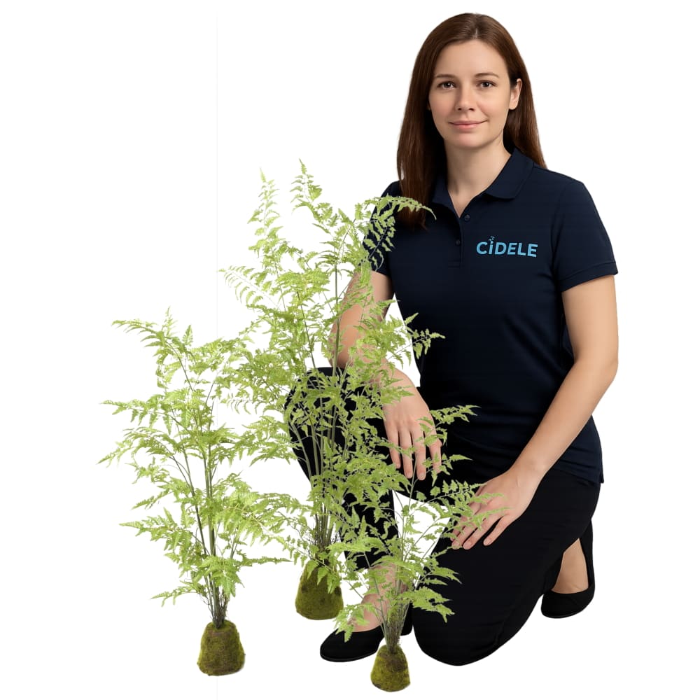 Conçue avec un socle recouvert de mousse, cette fougère peut être disposée directement sur le sol, dans un décor de scène, ou au pied de structures plus imposantes. Son volume maîtrisé permet de la multiplier sans surcharge visuelle. Le rendu visuel reste naturel, avec un feuillage finement découpé qui évoque une végétation légère et fraîche, idéale pour créer du contraste ou de la continuité dans un décor.